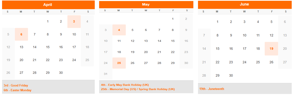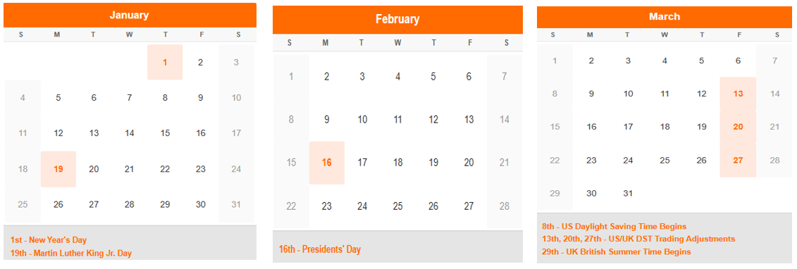 | Friday 13, 20 and 27 March 2026 | FX markets, commodities, 24-hour index markets and the dealing desk will close at 9pm |